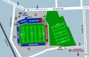 Coleraine have asked that all away supporters enter the ground via the Hillman’s Way entrance for today’s game as shown on the map below. Parking is available at the Causeway Coast Vineyard.